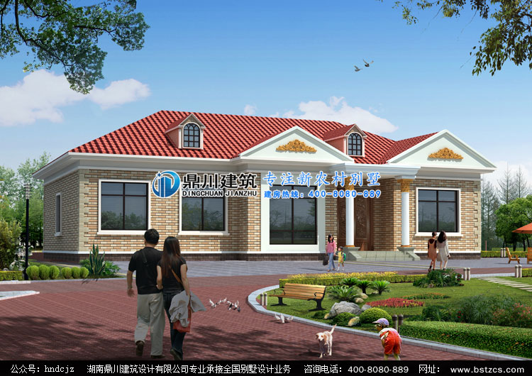 L007簡單一層平房設計效果圖,一層農村別墅設計,鼎川建筑