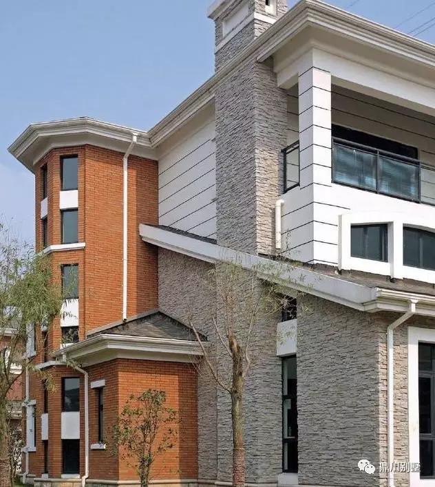 別墅外墻用文化石做鋪貼,看起來會非常有氣場,不過要注意防水問題。搭配文化磚用也是可以的,應盡量把兩者的顏色區分開來,文化磚的顏色要力求輕盈,兩者互相襯托對比,才能讓別墅自建房的氣質更加優雅!