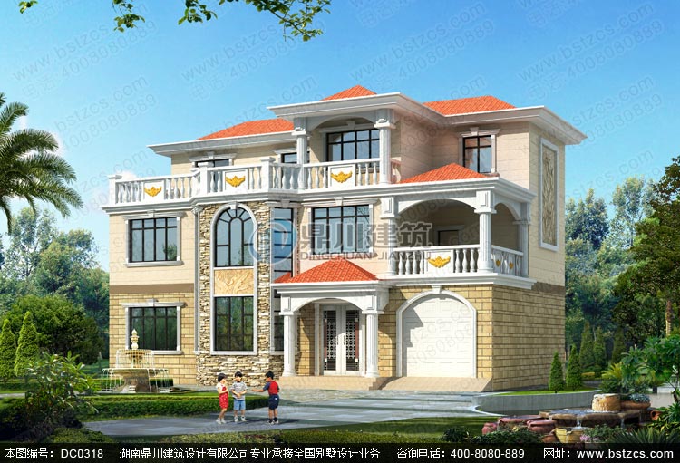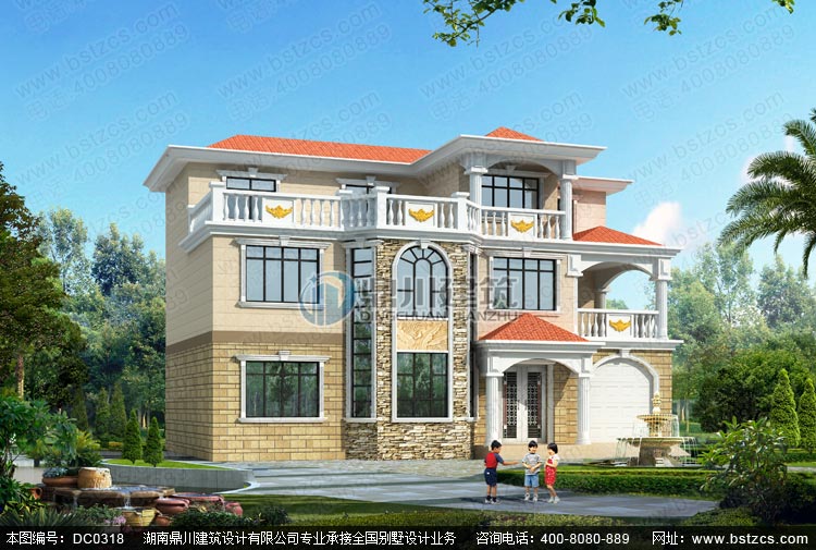 這是一款復式三層帶露臺別墅設計圖紙施工建造效果實拍,可以說是農村自建房的大氣代表之作了。此款別墅設計是一套經典的田園歐式風格別墅,既有恢宏大氣的外觀,又有清新自然的質感。活潑俏皮的色調,肌理分明的文化石,西式風格的羅馬柱,經典的造型洋溢著無限的活力與朝氣。外觀規整有序,開闊的弧形采光窗,不僅有利于室內采光充分,而且讓房子更加通透高挑。大露臺的設計符合農村實際需求,方便日常晾曬,或是乘涼小憩。