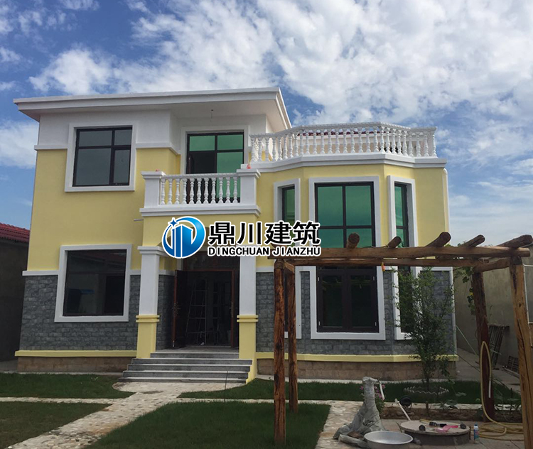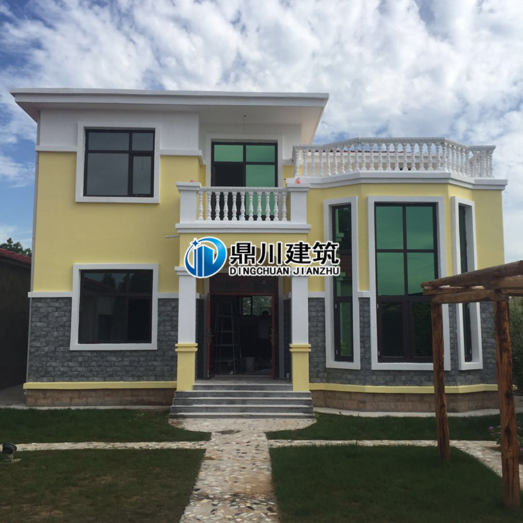 這是一款簡(jiǎn)歐風(fēng)格的新農(nóng)村二層復(fù)式帶露臺(tái)別墅設(shè)計(jì)。在原設(shè)計(jì)中房屋屋頂是個(gè)斜頂形式的,這個(gè)戶(hù)主在購(gòu)買(mǎi)了圖紙之后,考慮到農(nóng)村晾曬東西和易于觀景等需求,在施工的時(shí)候做了改動(dòng),將斜頂改成了平頂,但是整體效果出來(lái)卻一點(diǎn)都不亞于別墅設(shè)計(jì)效果圖。再加上這款設(shè)計(jì)中包含的眾多時(shí)尚元素:大露臺(tái),落地窗,大氣的門(mén)斗,以及凸顯經(jīng)典的石漆等,使這款房子的外觀搭配大氣又好看,在農(nóng)村絕對(duì)難過(guò)時(shí)。