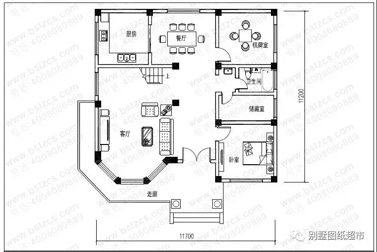 此款別墅,開間11.7米,進深11.4米,占地面積138.98平方米,建筑面積376.37平方米,主體造價為26-32萬之間,此款圖紙編號: DC0066。