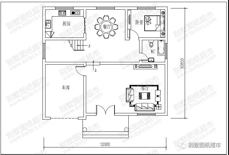 一 層:客廳、臥室、廚房、餐廳、衛生間、車庫