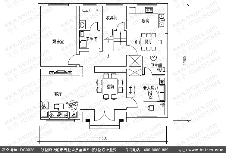一 層:堂屋、客廳、老人房(附衛生間)、娛樂室、廚房、餐廳、農具間、衛生間