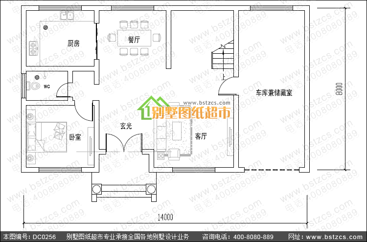 一 層:客廳、臥室、廚房、餐廳、衛生間、車庫(兼儲藏室)