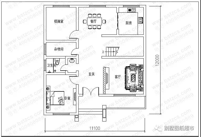一 層:客廳、臥室、棋牌室(或臥室)、廚房、餐廳、雜物間、衛生間