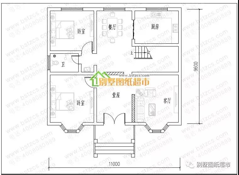 一 層:堂屋、客廳、2臥室、廚房、餐廳、衛生間