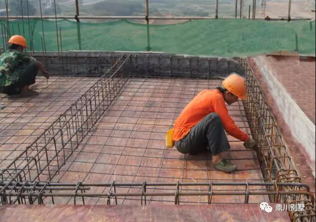 3、為確保上部鋼筋的位置,兩層鋼筋之間須加鋼筋馬蹬。負彎矩筋每個相交點均要綁扎。