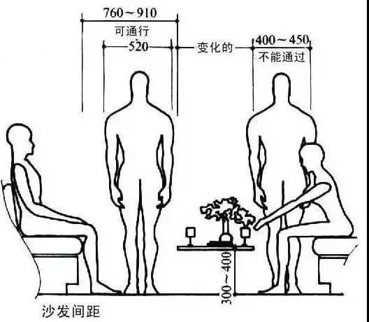 當(dāng)兩組沙發(fā)相對(duì)放置時(shí),尺寸的問題要非常小心,不然到時(shí)候直接讓你懷疑人生。當(dāng)沙發(fā)上坐人時(shí),其他人若能正常通行,那么茶幾與沙發(fā)較為適宜的距離為760-910mm。