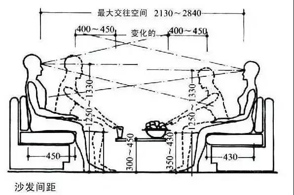 對(duì)立而坐時(shí),二人的最大交往空間為2130-2840mm。