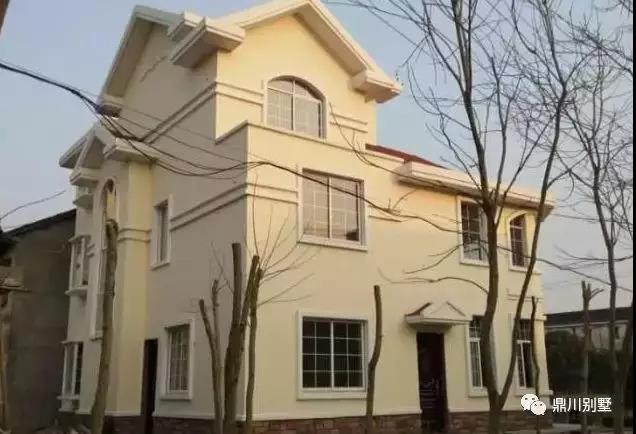 開間12米,進深12米,占地面積129平方米,別墅總共三層,外墻采用黃色噴漆,客廳挑空,多窗設計。