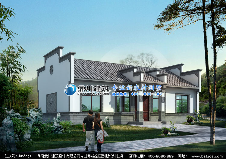 E007漂亮的中式一層小別墅設計圖效果圖,一層平房自建房圖紙