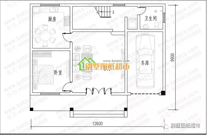 一 層:客廳、臥室(附衛生間)、廚房、餐廳、衛生間、儲存間、車庫