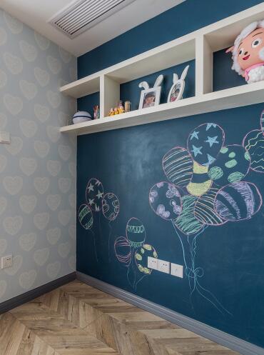 ▲兒童房一側墻做了黑板漆,留給戶主家小公主涂寫畫畫,也預留了書桌插座備用。