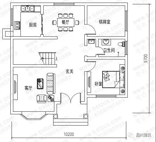 一 層: 玄關、客廳、臥室、棋牌室、廚房、餐廳、衛生間