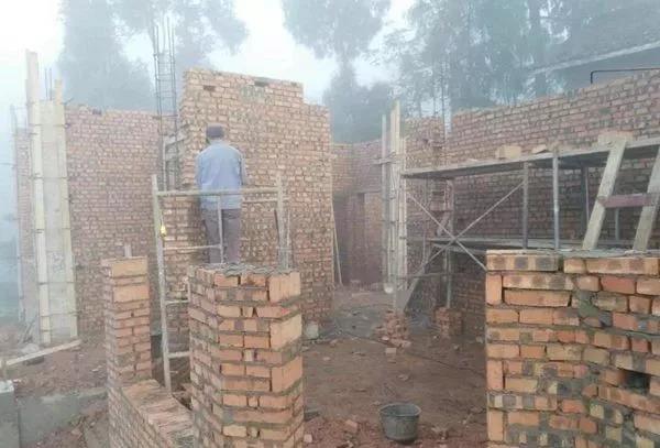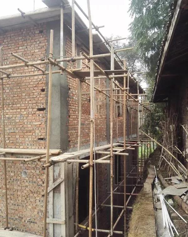 ▼二層樓板支模,終于可以平視鄉公社房屋了