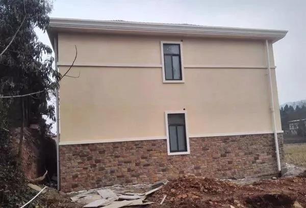 整套房子的外裝建材,我們都是根據效果圖,同時與房主確定,就定制生產,然后從成都整車拉到工地上