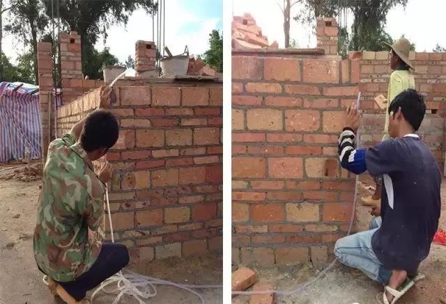 當然為保證墻體橫平豎直,施工隊也采取了一些很好的措施,這點值得學習。