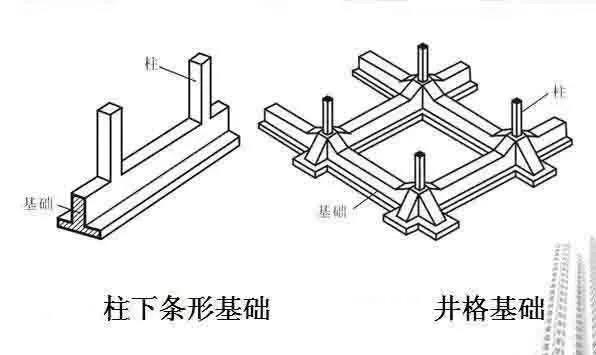 當框架結構處于地基條件較差或上部荷載較大時,為了提高建筑物的整體性,防止柱子之間產生不均勻沉降,常將柱下基礎沿縱橫兩個方向擴展連接起來,做成十字交叉的井格基礎。