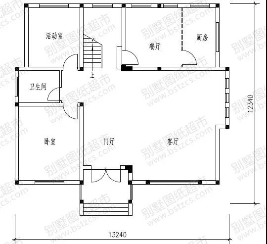 一 層: 門廳、客廳、臥室、活動室、廚房、餐廳、衛生間