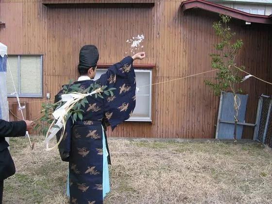 房屋主人參加地鎮祭儀式之前進行“凈手”