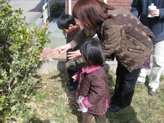 房屋家人在住宅地基的四角進行拋灑活動