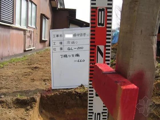 住宅地基基坑挖掘 控制挖掘深度的標尺細部特寫