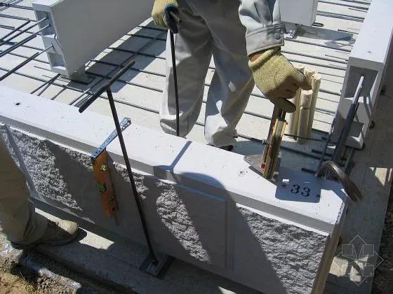 預制鋼筋混凝土基礎墻,高度、水平位置,控制施工,特寫。