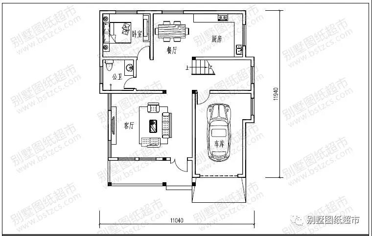 一 層:客廳、臥室、廚房、餐廳、衛生間、車庫