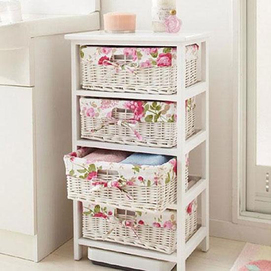白色斗柜用收納筐代替了抽屜,田園鄉(xiāng)村氣息十足,用布藝裝飾的收納筐顯得格外唯美清新,小巧的造型讓它成為家居邊角的收納新寵。