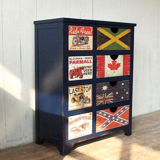 用老廣告和國旗圖案作為斗柜噴繪顯得個(gè)性十足,無論是鐘情于美式、英倫還是復(fù)古風(fēng)格,它都是你的不二選擇。