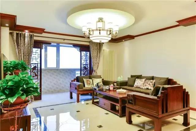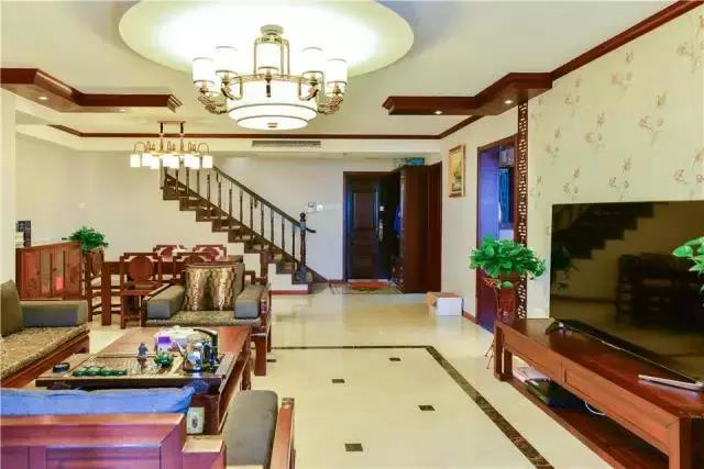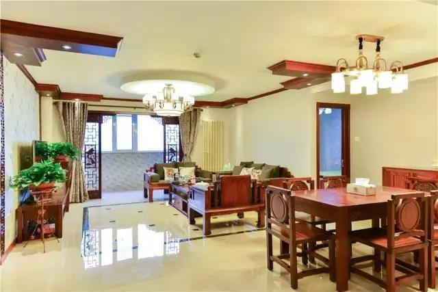 ▲客廳很大,房子面積有150平,還是復(fù)式樓,住著寬敞舒適,雖然不是很純的中式,不過(guò)效果也非常棒。