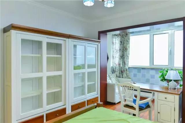 ▲除了有衣柜還有個(gè)玻璃推拉門(mén)收納柜,實(shí)用又好看,陽(yáng)臺(tái)做成了休閑區(qū),午后坐在陽(yáng)臺(tái)沙發(fā)上看書(shū)喝茶,愜意休閑!