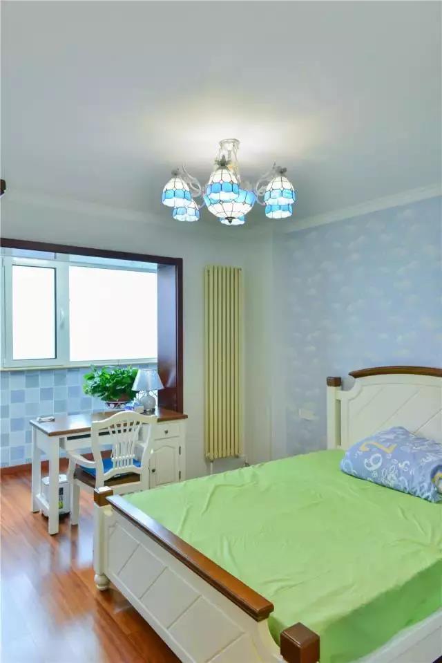 ▲次臥是地中海田園風(fēng)格的,這是老婆喜歡的風(fēng)格,地中海風(fēng)格的吊燈很好看,白色與原木色搭配效果很棒。