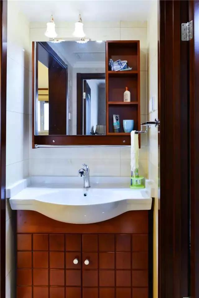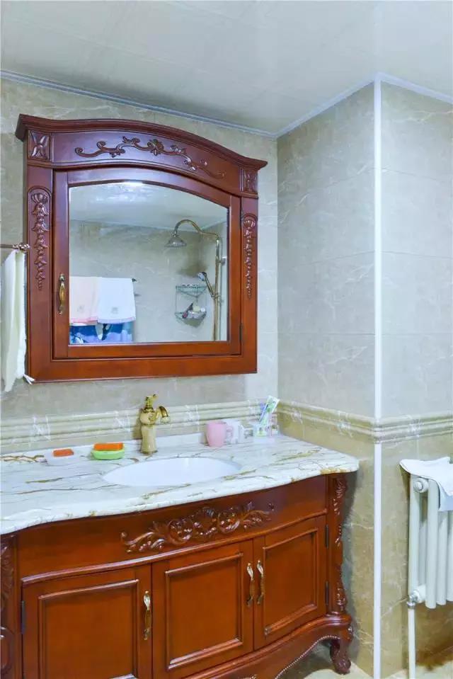 ▲主衛(wèi)干區(qū),古典風(fēng)格的鏡柜和洗手池柜,很好看