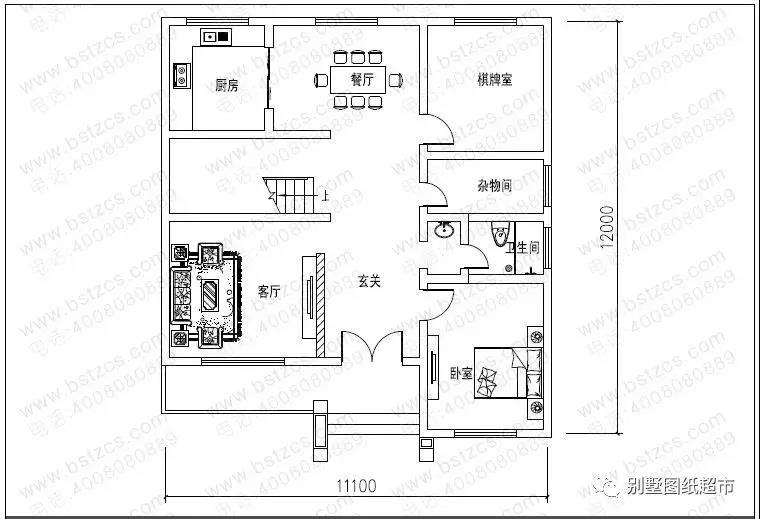 一 層:客廳、臥室、棋牌室(或臥室)、廚房、餐廳、雜物間、衛生間