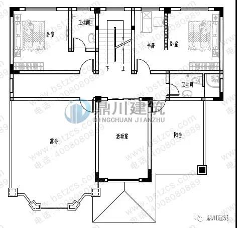三 層:活動室、臥室(附衛生間)、臥室(附書房)、衛生間、陽臺、露臺