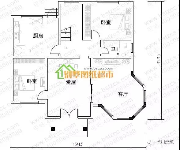 一 層:堂屋、客廳、2臥室、廚房(兼餐廳)、衛生間