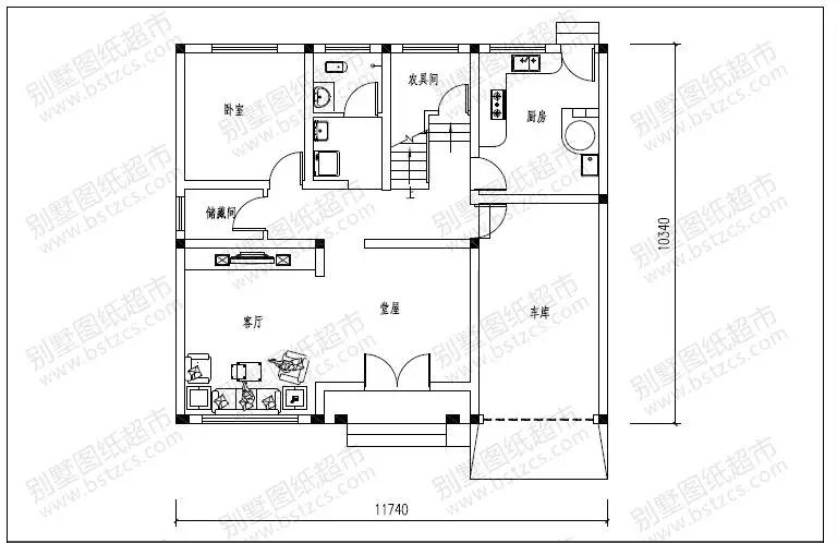 一 層:堂屋、客廳、臥室、廚房(兼餐廳)、儲藏間、農具間、衛生間、車庫