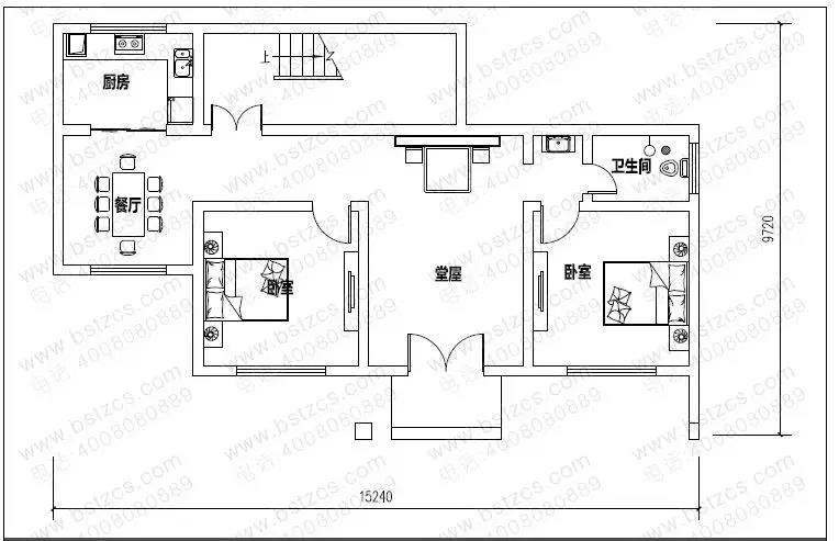 一 層:堂屋、2臥室、廚房、餐廳、衛生間