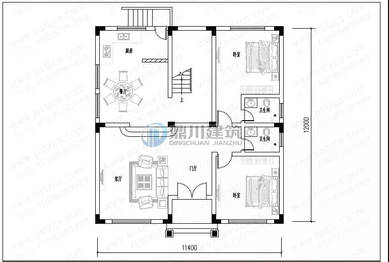 一 層:客廳、臥室(附衛生間)、臥室、廚房、餐廳、衛生間