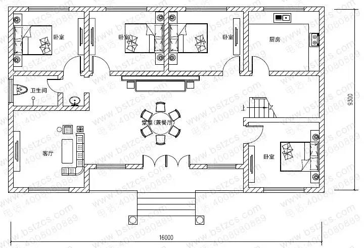 一 層: 堂屋(兼餐廳)、客廳、4臥室、廚房、衛生間