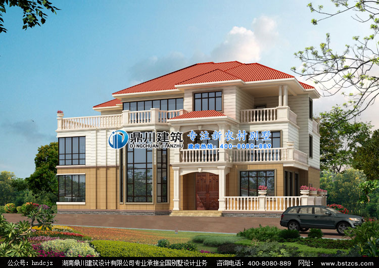 當前位置: 首頁 > 設計案例 > D012復式三層帶露臺別墅外觀效果圖,三層別墅圖紙設計