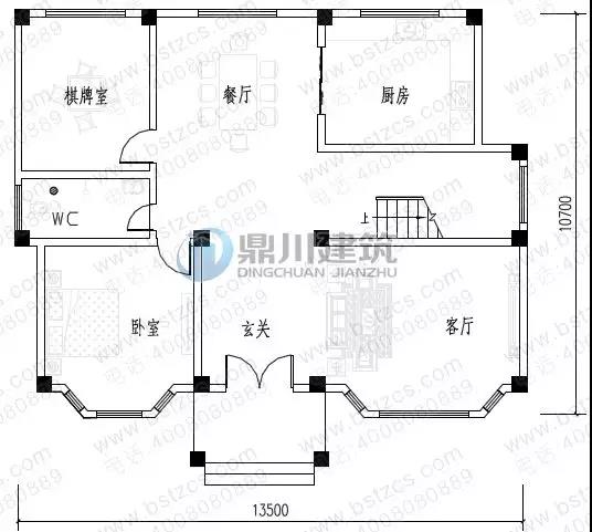 一 層:玄關、客廳、臥室、棋牌室、廚房、餐廳、衛生間