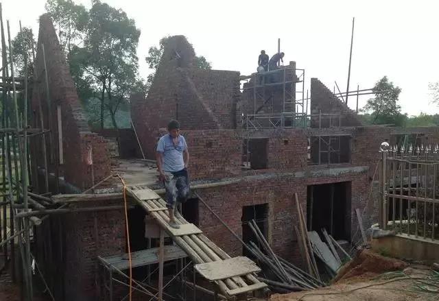 不是為了省那點水泥,窗戶到樓板就幾匹磚想想完全沒必要在做過梁了。一樓樓板現(xiàn)澆,二樓襟墻才1.2米高度,坡屋頂先用鋼筋混凝土澆梁及屋檐,中間做木屋頂。說實話這個房子的戶型,工藝,結構基本都是我們這里沒有人做過的,本人也是抱著創(chuàng)新的心態(tài),完成搭一個大積木的夢想。所幸這個泥工隊伍比較聽話,一切按我說的辦,最終效果咋樣,大家拭目以待吧。