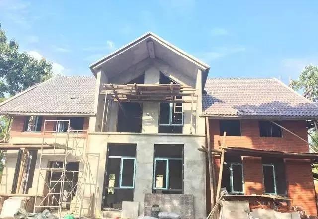 主體框架已經(jīng)落成,外部環(huán)境和內部裝修也在進行中,但與戶型效果圖相比,在顏色的選取上選用了深色系的文化是外墻, 整體的感覺更加貼切當?shù)氐淖匀痪吧H近自然。