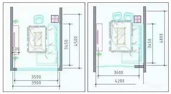 (2)進深方向,保證各類家具擺放后活動空間,最小進深尺寸在3600mm;