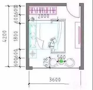 進深:床寬1500mm+床頭柜1200mm+衣櫥600m,尺寸≥3300m