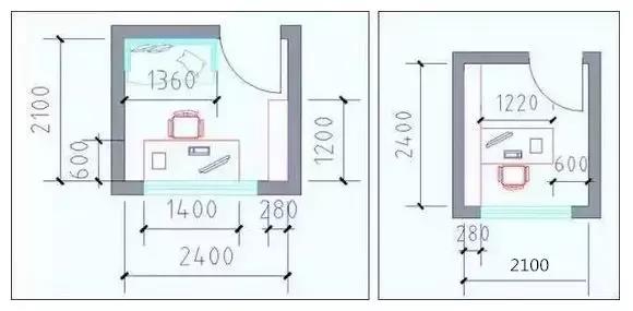 (1)座便器所占的面積為370x600mm;懸掛式洗面盆占用的面積為500x700mm,圓柱式洗面盆占用的面積400x600mm;正方形淋浴間的面積為900x900mm。