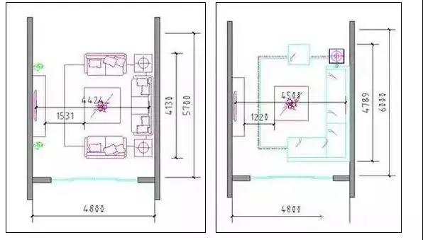 (2)開間上凈尺寸在4500mm以上,保證電視到沙發之間視距在4200mm以上可享受55寸及以上電視帶來視覺感受。