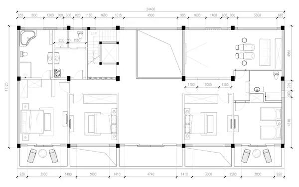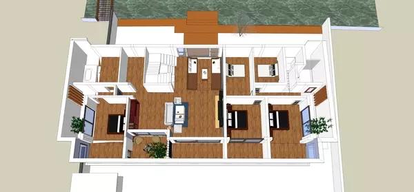 大伯家只有女兒,該房子作為老人回家歇腳使用,女兒女婿回家臨時住住,要求臥室 4 間,餐廳客廳經濟實用為主。